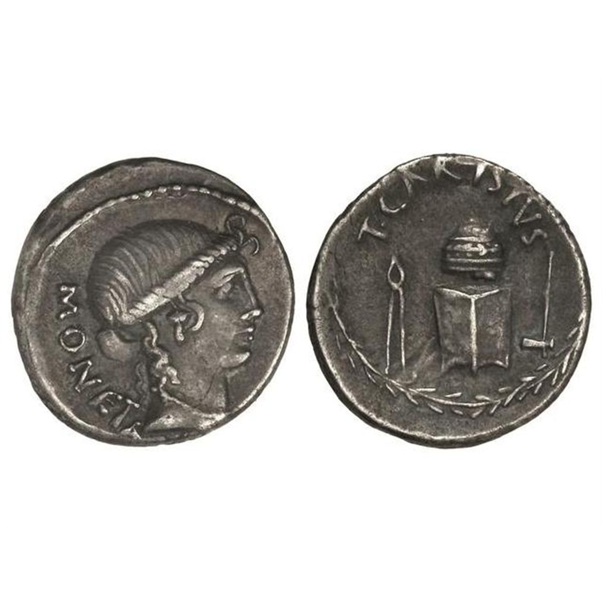 It is interesting to note the location of the Roman Republican mint is directly associated with the temple of Juno Moneta by two literary sources. Although some modern authors have disagreed with this location on archaeological grounds there is no real reason to doubt the ancient sources particularly Livy who was alive at the time that he is writing about and would be well aware of the location of the Roman mint. Another particularly interesting source it illustrates the connection between the goddess Juno and Roman currency is a coin depicting minting tools and Juno (see below).