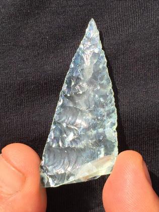 “As I was digging around in the sand with my foot, something shiny glinted in the light and I recognised the object to be a glass spearhead,” Professor Collard said.