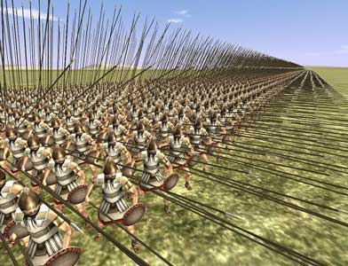 The infantry, known as the Macedonian phalanx, was ingeniously armed with a 4.5 to 6.5 metre pike (greek: sarissa) which was held in their right hand, and a shield (aspis) in their left.